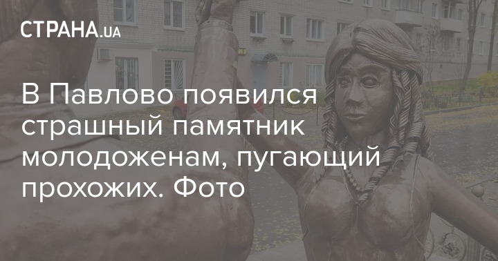 В Павлово появился страшный памятник молодоженам, пугающий прохожих. Фото