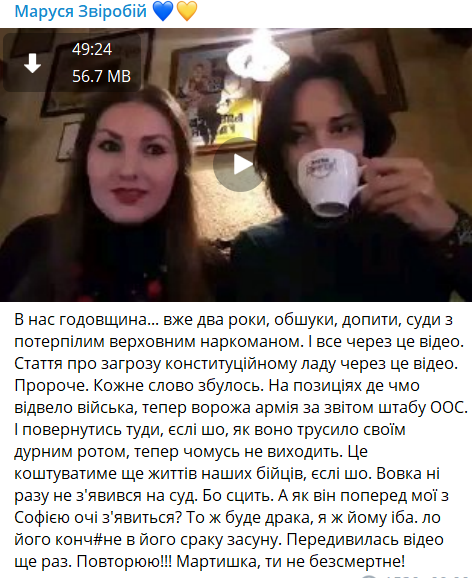 Два года назад нардеп партии Порошенко София Федына и военный волонтер Маруся Зверобой (настоящее имя Елена Беленькая) записали свой скандальный стрим с угрозами Владимиру Зеленскому.
