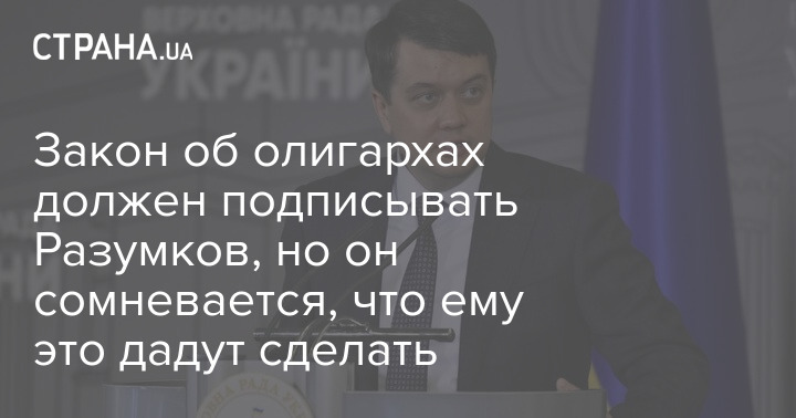 Согласно решению Конституционного суда, подписывать закон об олигархах должен Дмитрий Разумков, который на момент его принятия был спикером парламента.
