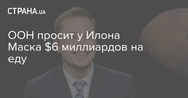 У основателя компаний Tesla и SpaceX Илона Маска попросили $6 млрд на борьбу с угрозой голода и его последствиями для человечества. С просьбой о финансовой помощи к нему обратился исполнительный директор Всемирной продовольственной программы (ВПП) ООН Дэвид Бизли.