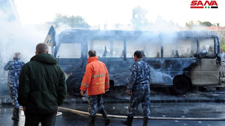 В центре Дамаска подорвали автобус с военными, погибли 14 человек. Видео