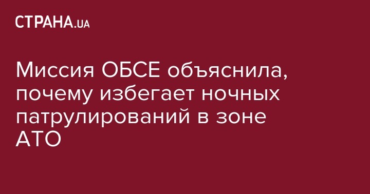 Представители специальной мониторинговой миссии ОБСЕ не патрулируют территорию в зоне АТО в ночное время суток из-за недостаточной видимости и опасности, исходящей от мин. Об этом говорится в сообщении миссии в социальной сети Facebook.