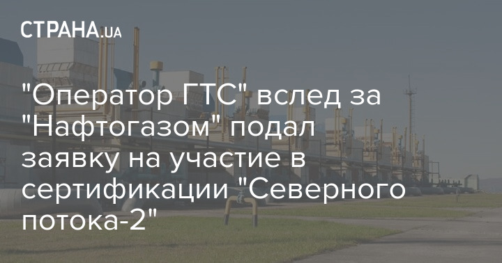 "Оператор Газотранспортной системы (ГТС) Украины" вслед за "Нафтогазом" подал заявку в немецкий энергетический регулятор (Bundesnetzagentur) на участие в процедуре сертификации Nord Stream-2 AG - оператора российского газопровода "Северный поток-2".