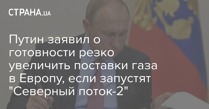 Путин заявил о готовности резко увеличить поставки газа в Европу, если запустят "Северный поток-2"