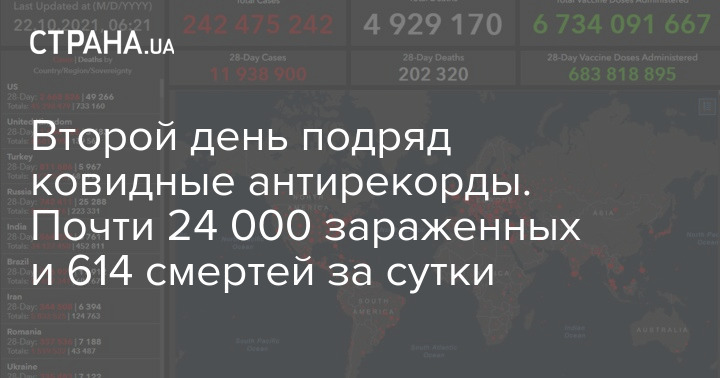 Второй день подряд ковидные антирекорды. Почти 24 000 зараженных и 614 смертей за сутки