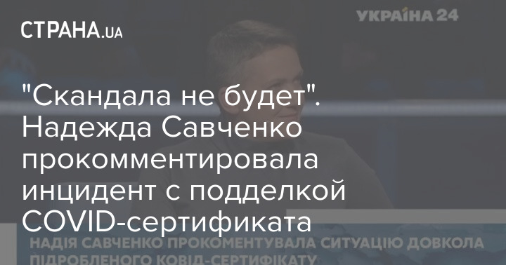 "Скандала не будет. Ни Вера Савченко, ни я не подделывали, не заказывали, не покупали никаких сертификатов", - сказала Савченко, комментируя информацию о попытке вместе с сестрой пройти пограничный контроль в аэропорту "Борисполь" по поддельному COVID-сертификату.