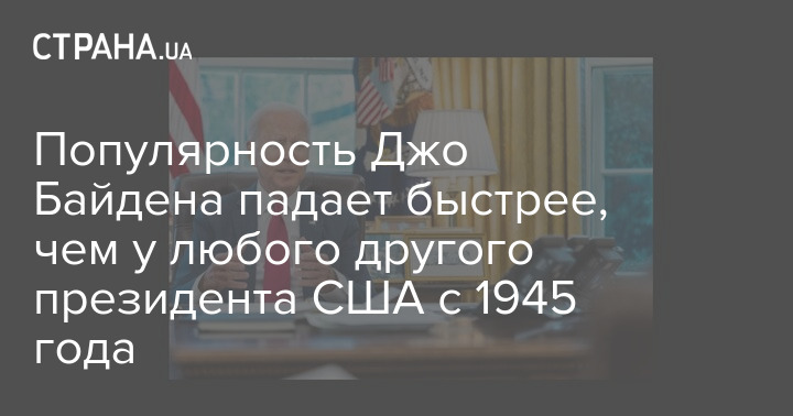 Рейтинг главы Белого дома Джо Байдена за девять месяцев упал сильнее, чем у всех президентов США с 1945 года. Он снизился на 11,3 % - с 56% до 44,7%.