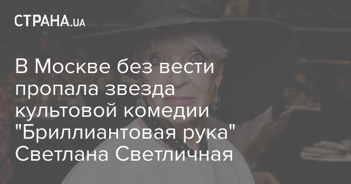 Полиция объявила звезду "Бриллиантовой руки" в розыск. Ситуация осложняется тем, что Светлана Светличная страдает деменцией. Такое расстройство у нее появилось после травмы, которую ей нанес упавший во время съемок софит.