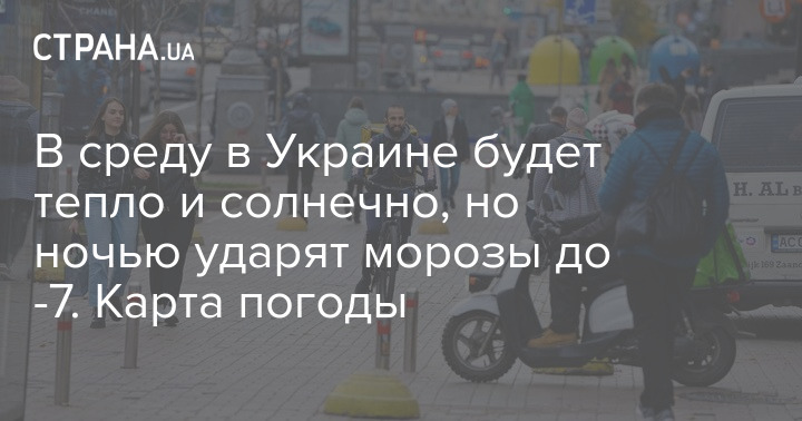 В среду, 27 октября, в Украине будет тепло. Воздух прогреется до +9...+14 градусов. Осадков не ожидается ни в одной области нашей страны. Однако ночью во многих регионах ударят морозы: сильнее всего похолодает в восточных областях, в частности, в Луганской столбики термометров могут опуститься до отметки -7 градусов.