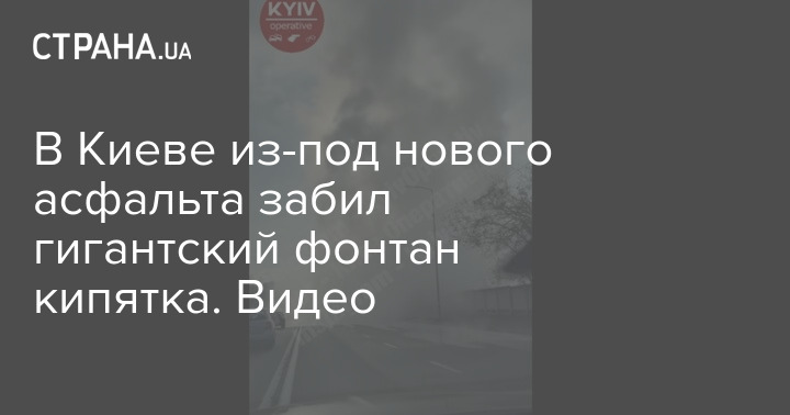 В Киеве из-под нового асфальта забил гигантский фонтан кипятка. Видео