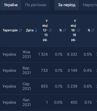 Данные по привитым несовершеннолетним в Украине в октябре