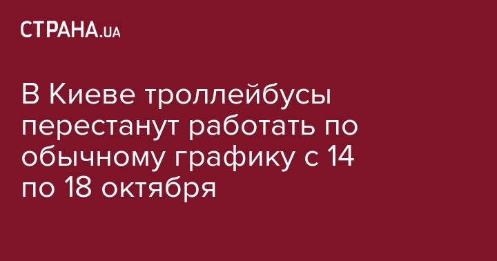 В Киеве троллейбусы перестанут работать по обычному графику с 14 по 18 октября