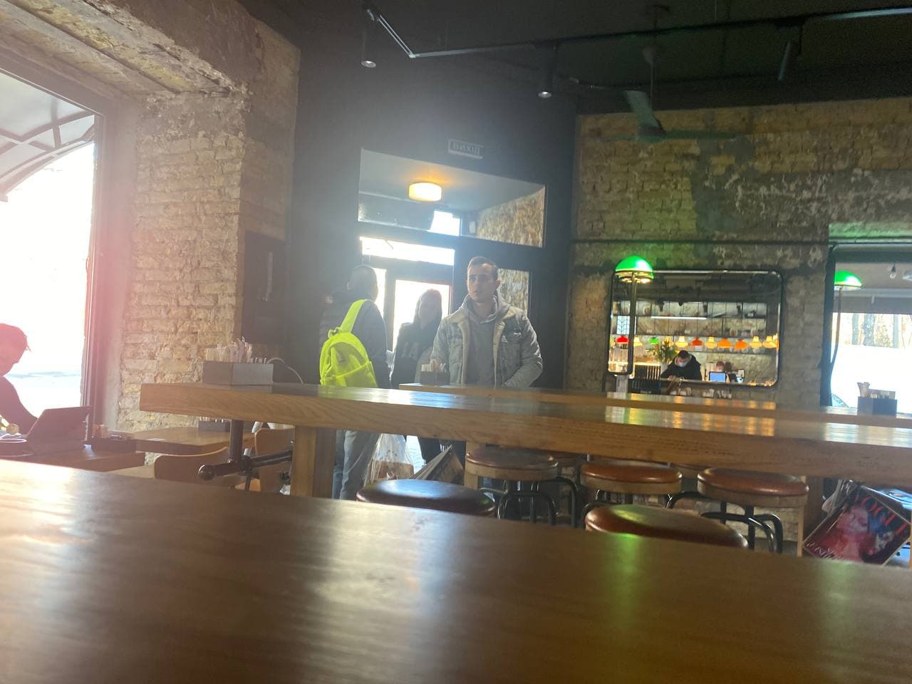 А вот другие заведения такой пропускной режим не внедряют. Например, в кофейню "Хлебный" на Льва Толстого нашего корреспондента пустили без проверок. Правда, персонал работает в масках, а на входе висит предупреждение о социальной дистанции.