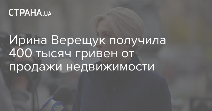 Народный депутат от "Слуги народа" Ирина Верещук, которая готовится возглавить Министерство по делам оккупированных территорий, задекларировала 400 тысяч гривен доходов от отчуждения недвижимого имущества.
