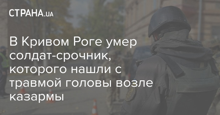 В больнице Кривого Рога от полученных травм скончался солдат срочник, которого 31 октября обнаружили в бессознательном состоянии на территории воинской части. У парня была выявлена черепно-мозговая травма. Он был госпитализирован, но врачам не удалось его спасти.