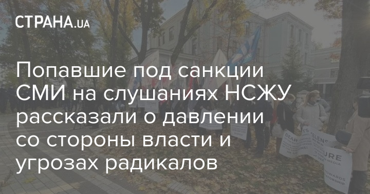 Во вторник, 2 ноября, сотрудники незаконно закрытых телеканалов "112 Украина", NEWSONE, ZIK, "Першого Незалежного" и попавших под санкции СНБО интернет-изданий "Страна" и "Шарий.net" приняли участие в ежегодных общественных слушаниях НСЖУ.
