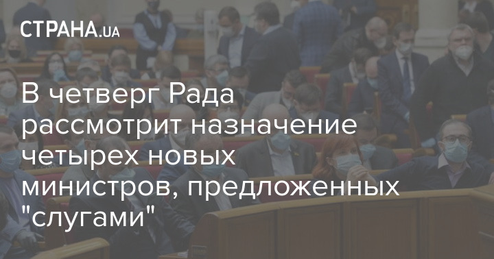 В четверг Рада рассмотрит назначение четырех новых министров, предложенных "слугами"