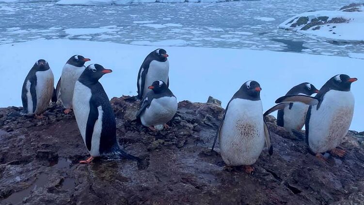 Самым распространенным видом пингвинов в районе "Вернадского" являются субантарктические пингвины. Их также называют дженту или ослиными за характерный крик. Этих птиц легко узнать по красному клюву и черно-белому "фраку".