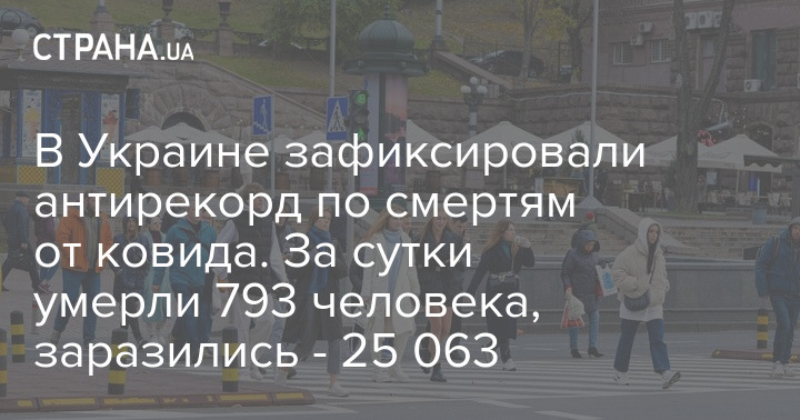 В Украине за прошлые сутки коронавирусом заразились 25 063 человека. 793 пациентов с Covid-19 умерли. Это антирекорд по смертям от коронавируса. Предыдущее максимальное количество летальных случаев было зафиксировано 26 октября, тогда сообщалось о 734 умерших.