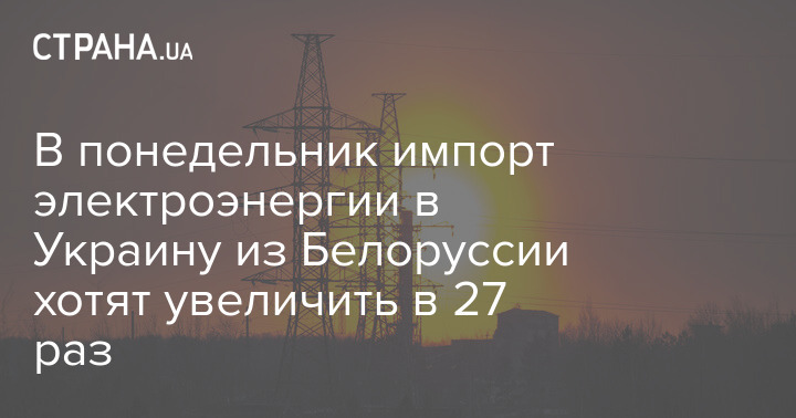 Украинские энергопоставщики в понедельник, 8 ноября, намерены импортировать из Белоруссии почти в 27 раз больше электроэнергии, чем днем ранее.