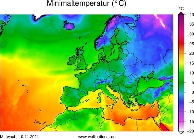 Судя по опубликованной Украинским гидрометцентром карте погоды на 10 ноября, Украину ждет существенный перепад температуры от +4-9 градусов с дождями на юге и востоке и мокрым снегом на севере, днем, 9 ноября, до -2-8 ночью. Стоит отметить, что после морозной ночи в среду, 10 ноября, вернется снова плюсовая температура - столбики термометров покажут от 3 до 9 градусов выше ноля.