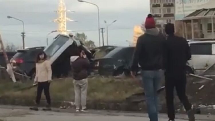 По словам очевидцев, авто слетело на огромной скорости с трассы и влетело на автостоянку.
