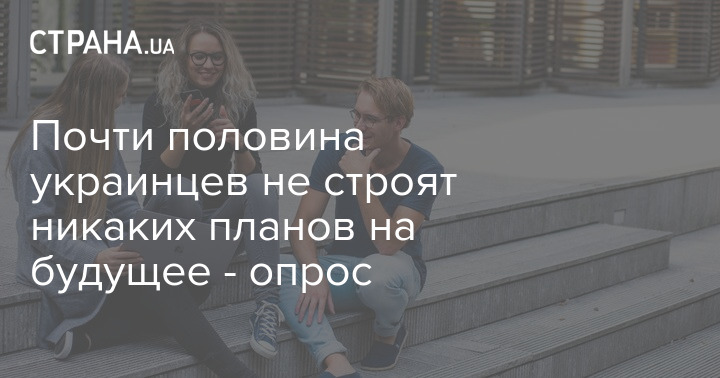 Около 50% опрошенных украинцев возрастом от 18 лет и старше заявили, что у них нет никаких планов на будущее. Лишь четверть планирует свою жизнь на несколько лет вперед. Как показала статистика, структурировать свое будущее легче младшим жителям страны, богатым, а также жителям столицы.
