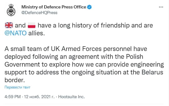 Правда, речь идет о "небольшой группе" и только представителей инженерных войск, для помощи в оборудовании границы (Польша ранее и сама говорила, что британцы помогут с заградительными сооружениями). Но сам прецедент важен.