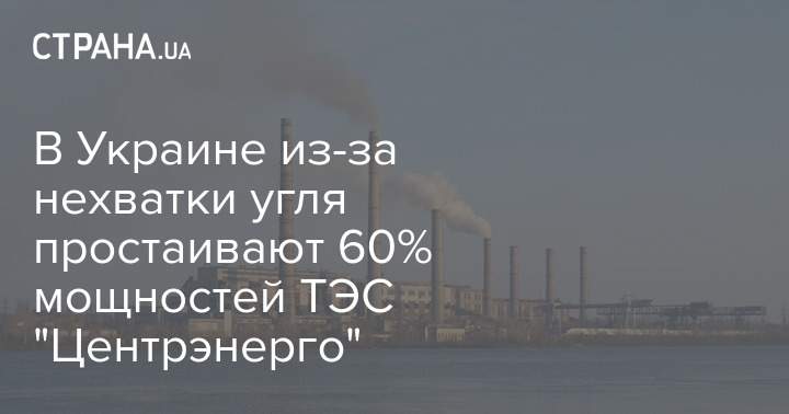 В Украине из-за нехватки угля простаивают 60% мощностей ТЭС "Центрэнерго"