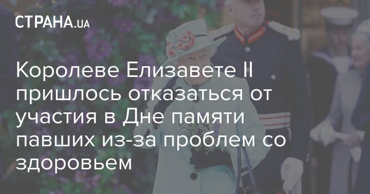 Королеве Елизавете II пришлось отказаться от участия в Дне памяти павших из-за проблем со здоровьем