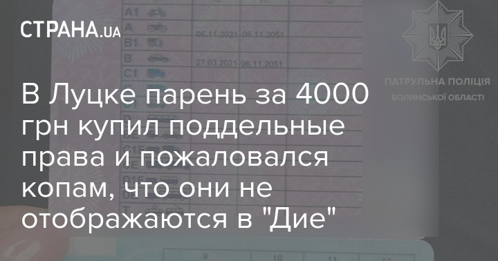 В Луцке парень за 4000 грн купил поддельные права и пожаловался копам, что они не отображаются в "Дие"