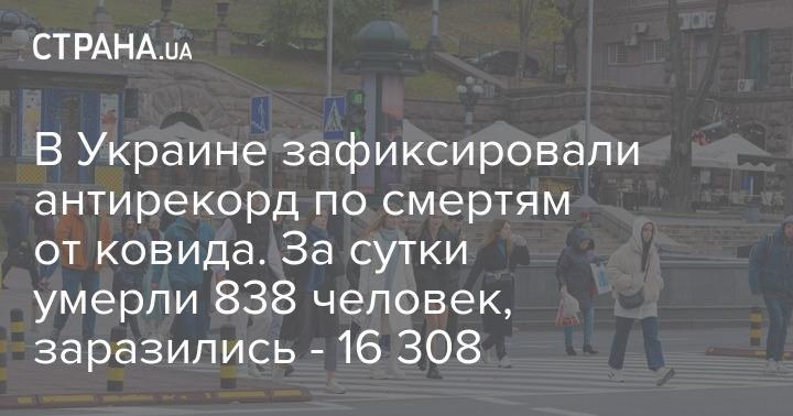 В Украине за прошлые сутки зафиксировали 838 смертей от коронавируса. Это новый антирекорд. Заразились Covid-19 вчера 16 308 человек.