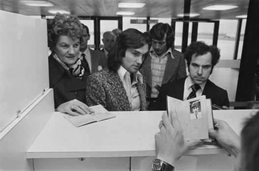 14. Джордж Бест проходить паспортный контроль в аэропорту Роттердама (1976 год).