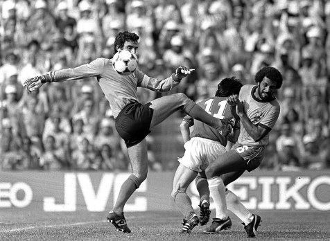 20. Голкипер "Скуадры адзурры" Дино Дзофф жестко встречает Жуниора в эпическом матче ЧМ-1982 Италия - Бразилия (3:2).