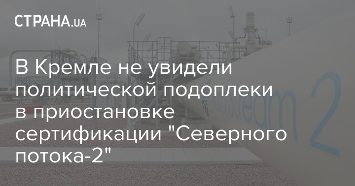 Пресс-секретарь президента Российской Федерации Дмитрий Песков сообщил о том, что в Кремле не видят политической подоплеки в приостановке в Германией сертификации "Северного потока-2".