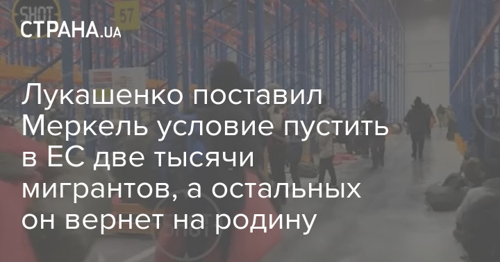 Президент Беларуси Александр Лукашенко в разговоре с и. о. канцлера ФРГ Ангелой Меркель поставил условие, что Евросоюз должен создать гуманитарный коридор для двух тысяч беженцев, а остальным желающим пересечь границу ЕС Минск поможет вернуться домой. Правда пока желание вылететь на родину высказали лишь 400 нелегалов из семи тысяч находящихся в данный момент в Беларуси. Об этом заявила пресс-секретарь белорусского лидера Наталья Эйсмонт, передает БелТА.