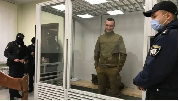 Вместе с другими праворадикалами из С14 он пришел в суд, где избирали меру пресечения руководителю "Муниципальной варты" Киева Игорю Мари. Последнего подозревают в хищении пяти миллионов гривен на закупке формы.