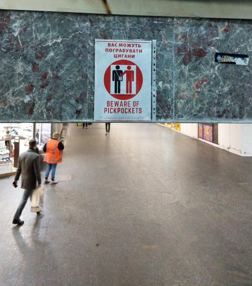 После "инспекции" с представителями власти - Криклием и Грищуком - националисты расклеили на вокзале расистские плакаты. "Вас могут ограбить цыгане".