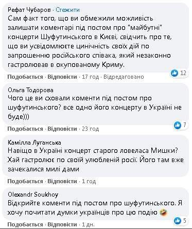 В свою очередь пользователи соцсетей негативно отреагировали на эту новость, так как артист внесен в базу "Миротворец". Некоторые из них начали активно оставлять гневные комментарии под постом в Facebook, но сервис Concert.ua ограничил комментарии. Также сервис ограничил доступ к комментариям и в Instagram.