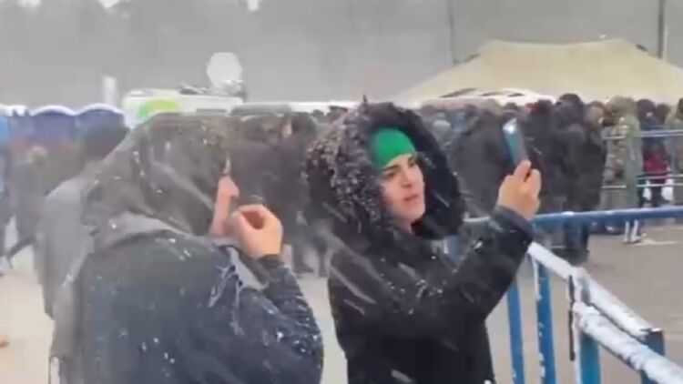 На белорусско-польской границе выпал снег. Беженцы делают селфи и пробуют его на вкус. Видео