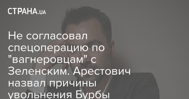 Арестович объяснил увольнение Бурбы тем, что тот "нарушил последовательность принятия решения" в проведении спецоперации по "вагнеровцам", не согласовав ее предварительно с Зеленским.