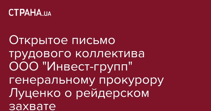 Открытое письмо трудового коллектива ООО "Инвест-групп" генеральному прокурору Луценко о рейдерском захвате