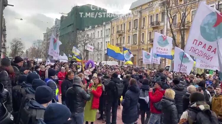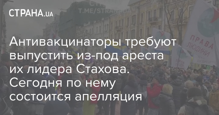 Вышедшие сегодня в Киеве на акцию протеста противника вакцинации и карантина под зданием СБУ скандируют "свободу Стахову". Лидер украинских антивакцинаторов Остап Стахов заключен под стражу по подозрению в попытке захвата власти.