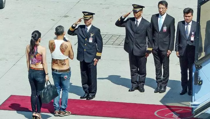 При этом встречали принца и его супругу по-королевски – с охраной в количестве 30 человек и на "Мерседесе". На фотографиях, опубликованных немецким таблоидом Bild, нового короля сопровождала девушка в не менее коротком топе. Как сообщает The Daily Mail, это потенциальная супруга Махи – Сутида Нуи. То ли бывшая стюардесса, то ли пилот Тайских авиалиний долгое время была любовницей кронпринца. По некоторым данным, Сутида уже родила королю ребёнка.