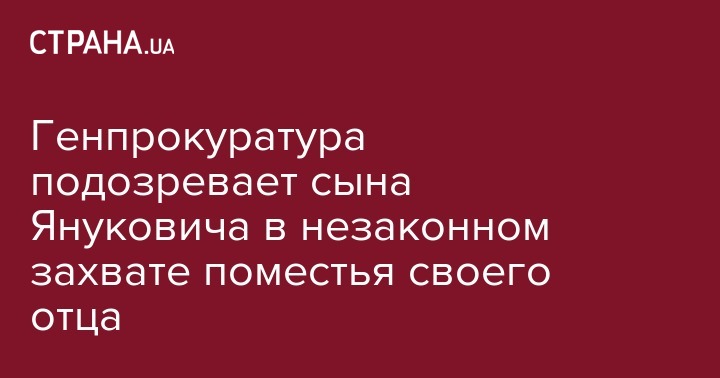 Генеральная прокуратура сообщила о подозрении сыну Виктора Януковича Александру в причастности к незаконному завладению резиденцией "Межигорье" (де-факто принадлежало экс-президенту). Об этом сообщает пресс-служба ведомства.