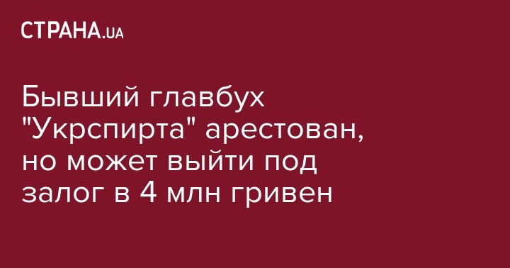 Шевченковский районный суд г.Киева своим постановлением от 15 октября избрал главному бухгалтеру ГП "Укрспирт" меру пресечения в виде содержания под стражей и определил залог в качестве альтернативы содержанию под стражей в размере 3 тысяч минимальных заработных плат, что составляет 4,1 млн грн, сообщает пресс-служба Генпрокуратуры Украины.