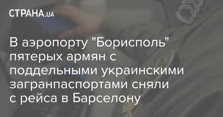 В аэропорту "Борисполь" пятерых армян с поддельными украинскими загранпаспортами сняли с рейса в Барселону