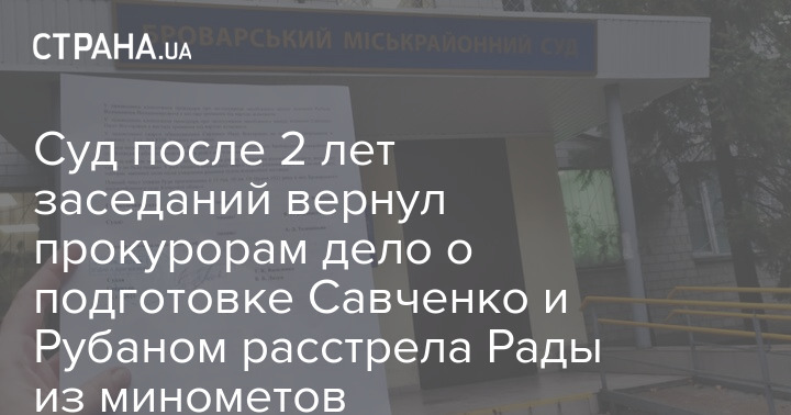 Дело в отношении бывшего народного депутата Надежды Савченко и переговорщика Владимира Рубана по обвинению в подготовке уничтожения Верховной Рады путем подрыва купола и минометного обстрела с барж, идущих по Днепру, дошло до суда, но суд вернул обвинительный акт прокурору.