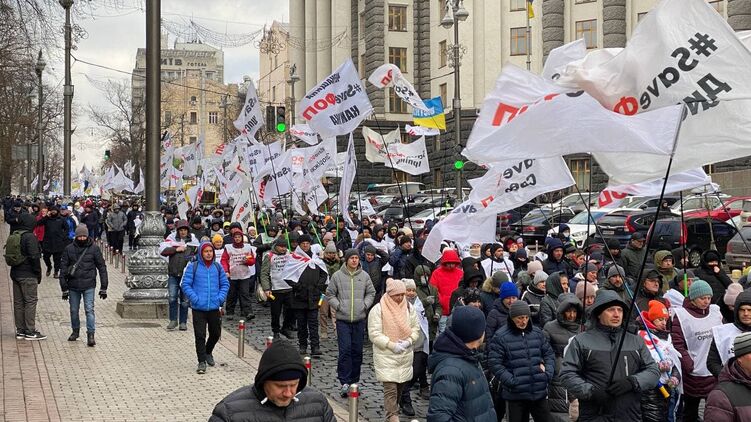 ФОПы, которые с самого утра среды, 1 декабря, протестовали под зданием Верховной Рады Украины, начали марш по центру Киева.