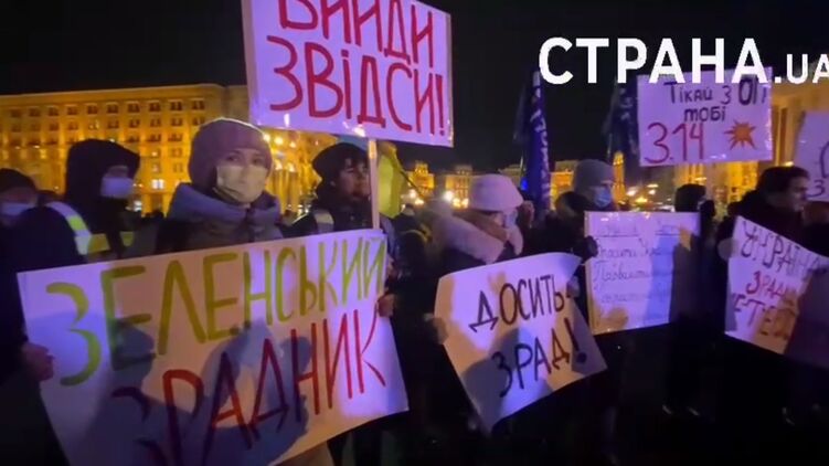 Сторонники Петра Порошенко и националисты собрались на Майдане, где развернули плакаты, лозунги на которых были посвящены не только ситуации в стране, но и супруге нынешнего президента Елене Зеленской.